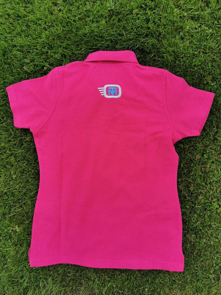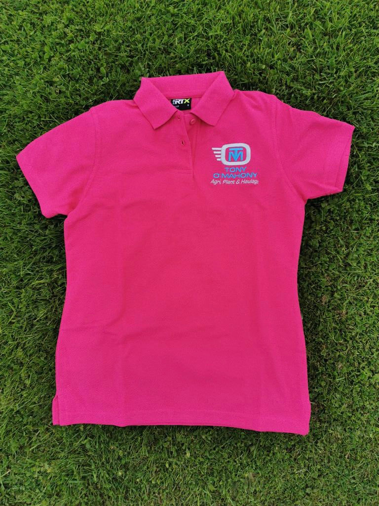 Women's Fuchsia Pink Polo Shirt embroidered with Tony O'Mahony logo front and back.