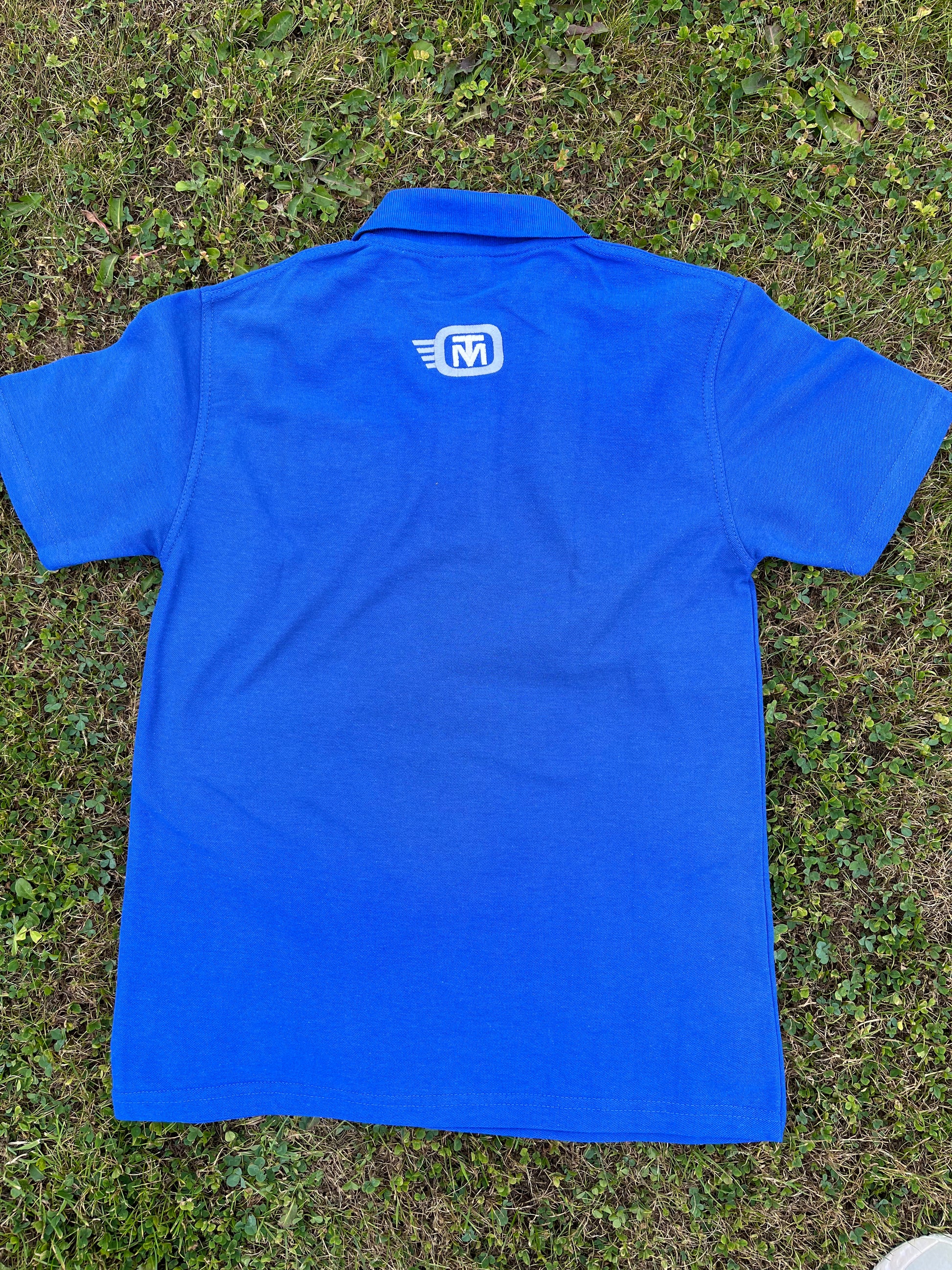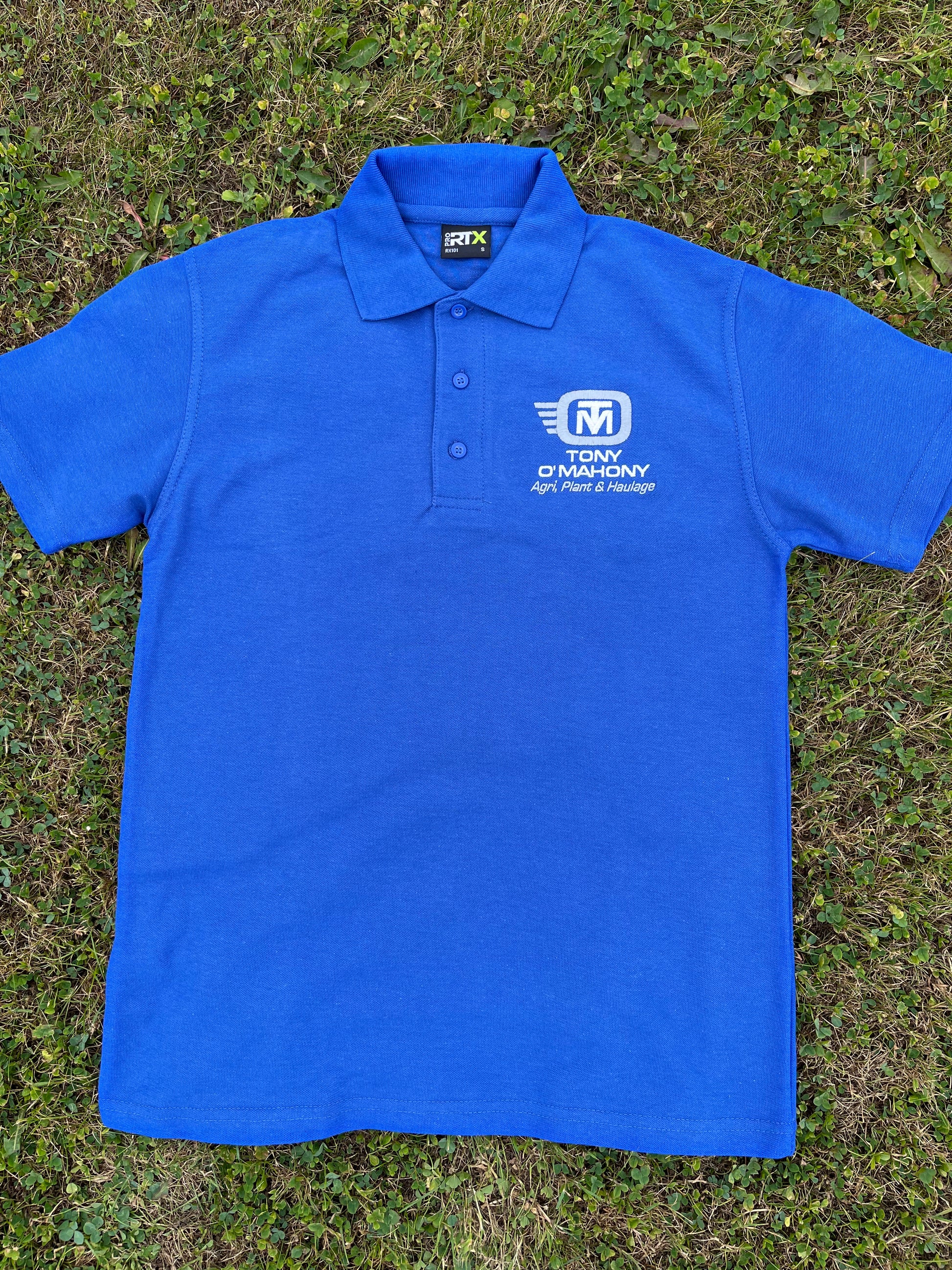 Men's Polo Shirt in Blue, embroidered with Tony O'Mahony logo front and back.